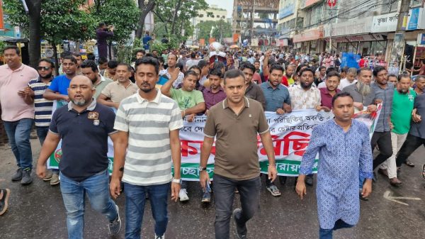 জেলা প্রতিনিধি – সারাদেশে আইনশৃঙ্খলা পরিস্থিতির অবনতি এবং ষড়যন্ত্রমূলকভাবে দেশকে অস্থিতিশীল করার অপচেষ্টার প্রতিবাদে নারায়ণগঞ্জ মহানগর স্বেচ্ছাসেবক দলের আয়োজনে এক বিক্ষোভ মিছিল ও সমাবেশ অনুষ্ঠিত হয়েছে। মঙ্গলবার দুপুরে জেলার সোসিয়ারী