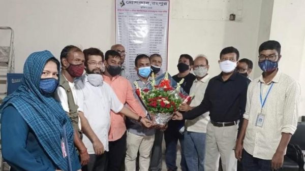 শরিফা বেগম শিউলীরংপুর প্রতিনিধিঃ সোমবার (২ আগস্ট) দুপুরে রংপুর প্রেসক্লাবের নবনির্বাচিত নেতৃবৃন্দের সাথে এক সৌজন্য সাক্ষাৎ করে ফুলেল শুভেচ্ছা জানিয়েছেন, রংপুর রিপোর্টার্স ইউনিটির নেতৃবৃন্দ। উক্ত শুভেচ্ছা প্রদান অনুষ্ঠানে উপস্থিত ছিলেন,