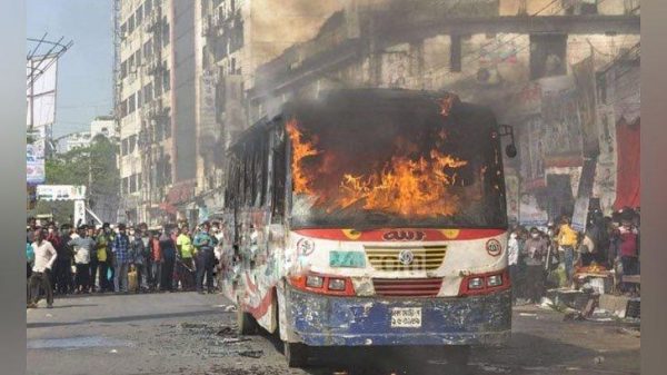 রাজধানীর নটাপল্টনে বাসে আগুন দেওয়ায় সন্দেহভাজন ৯ জনকে আটক করেছে পুলিশ। পল্টন থানার ওসি অপারেশনস হিরন্ময় সংবাদমাধ্যমকে এ তথ্য নিশ্চিত করেছেন। বৃহস্পতিবার (১২ নভেম্বর) সন্ধ্যায় তাদেরকে আটক করা হয়েছে।এর আগে,