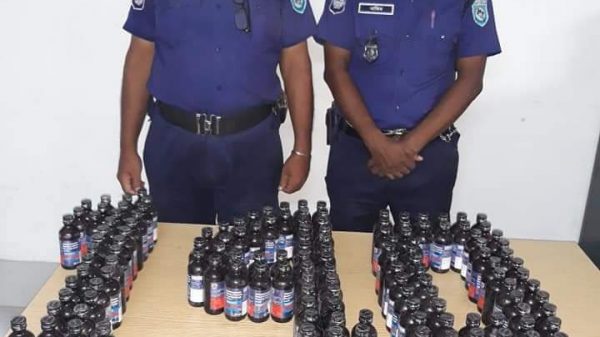 ঠাকুরগাঁওয়ে রাণীশংকৈল ধর্মগড় ইউনিয়নের চেংমারী (ভাউলবস্তি) গ্রামের পূর্ব পার্শ্বে কাঁচা রাস্তার ছোট ব্রিজের উপর হতে একটি চটের বস্তার ভেতর থেকে ৩ _টা ৪৫ মিনিটে ১৪০ বোতল ফেন্সিডিল উদ্ধার করেছে রাণীশংকৈল