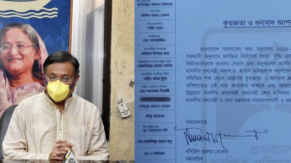 করোনায় ক্ষতিগ্রস্ত চলচ্চিত্র শিল্পকে সহায়তার লক্ষ্যে এবছর তথ্য মন্ত্রণালয় থেকে পূর্বের তুলনায় বেশি সংখ্যক চলচ্চিত্রকে অনুদান দেয়ার সিদ্ধান্তের কথা জানিয়েছিলেন তথ্যমন্ত্রী ড. হাছান মাহমুদ। গত ২৫ জুন মন্ত্রণালয়ের প্রজ্ঞাপনে তা