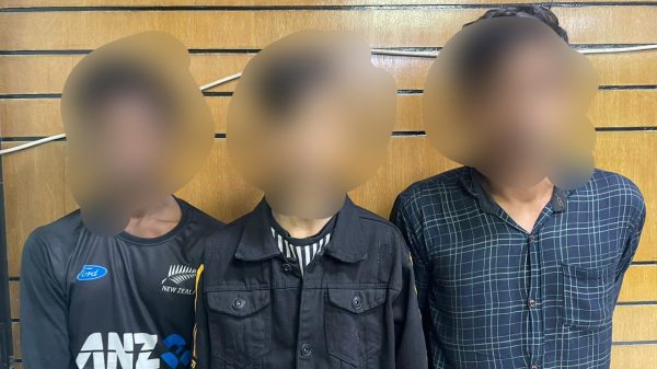 স্টাফ রিপোর্টার- রাজধানীর ফার্মগেট এলাকায় ছিনতাইয়ের অভিযোগে ৩ জনকে গ্রেফতার করেছে ডিএমপির তেজগাঁও থানা পুলিশ। গ্রেফতারকৃতরা হলেন-মো. সুজন মিয়া (২৩), মো. হাসান (১৯) এবং শান্ত (১২)। এসময় তাদের কাছ থেকে