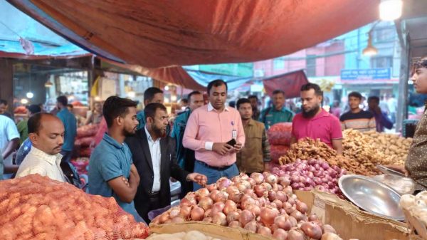 বাজারে চড়া দামে পেঁয়াজ বিক্রি এবং সেইসঙ্গে এই পণ্যটি মজুদ না করার জন্য বাজার মনিটরিং কার্যক্রম পরিচালনা শুরু করেছে ঢাকার জেলা প্রশাসন। রোববার (১০ ডিসেম্বর) রাজধানীর মোহাম্মদপুর কৃষি মার্কেট কাঁচাবাজার,