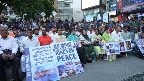 নিজস্ব প্রতিবেদক অগ্নিসন্ত্রাসের বিরুদ্ধে শান্তির জন্য রাজধানীর গুলশানে জড়ো হলো হাজারো মানুষ। এসময় অগ্নিসন্ত্রাস প্রতিরোধ করতে শপথ নেন তারা। শনিবার গুলশান-২ গোলচত্বরে ( ল্যান্ডমার্ক কর্নার ) অগ্নিসন্ত্রাসে ক্ষতিগ্রস্তদের সংগঠন অগ্নিসন্ত্রাসের