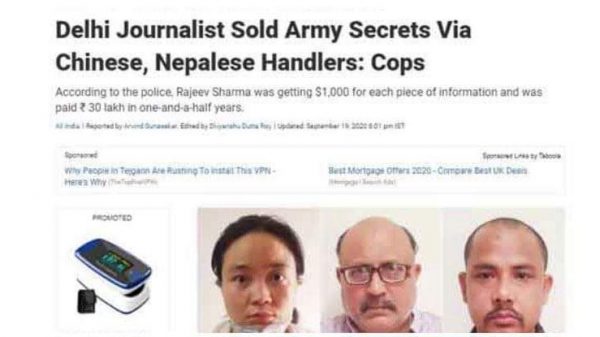 নয়াদিল্লির এক ফ্রিল্যান্স সাংবাদিককে গ্রেপ্তার করেছে সে দেশের পুলিশ। তার বিরুদ্ধে অভিযোগ ‘চীনা গোয়েন্দা কর্মকর্তাদের কাছে ‘সংবেদনশীল তথ্য’ সরবরাহ।’আজ শনিবার নয়াদিল্লি পুলিশের বরাত দিয়ে রয়টার্স এ খবর জানিয়েছে। ৬১ বছর