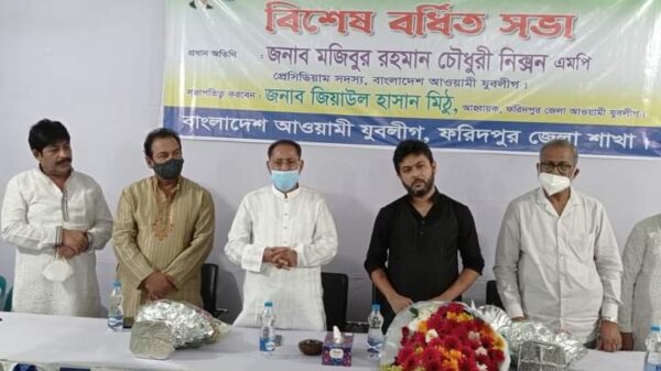 আব্দুল্লাহ আল মামুন রনী, ফরিদপুর প্রতিনিধি : ফরিদপুরের নবগঠিত জেলা যুবলীগের আহবায়ক কমিটির বিশেষ বর্ধিত সভা অনুষ্ঠিত হয়েছে। বৃহস্পতিবার রাত সাড়ে ১০টায় ফরিদপুরের মধুখালী উপজেলার কামালদিয়া একটি হলরুমে এ বিশেষ