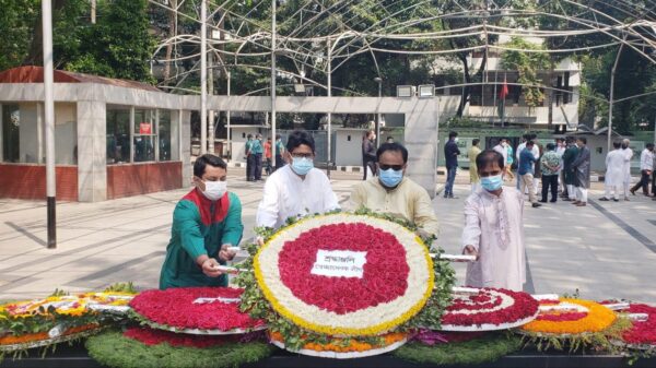 নিজস্ব নিউজ: আজ ১৭ই এপ্রিল মুজিবনগর দিবস উপলক্ষে সকাল ১০ঃ০০ টায় ধানমন্ডি ৩২ নম্বরে জাতির পিতা বঙ্গবন্ধু শেখ মুজিবুর রহমানের প্রতিকৃতিতে বাংলাদেশ আওয়ামী স্বেচ্ছাসেবক লীগ সভাপতি জননেতা নির্মল রঞ্জন গুহ