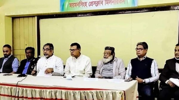 আনোয়ার সাদত জাহাঙ্গীরঃময়মনসিংহঃ ময়মনসিংহের ফুলপুর পৌরসভার নির্বাচনে বিএনপির মেয়র পদপ্রার্থী আমিনুল হকের নির্বাচনী পথসভায় হামলা এবং নির্বাচনী অফিস ও সাবেক এমপি অ্যাডভোকেট আবুল বাসার আকন্দের বাসা ভাঙচুরের প্রতিবাদে সংবাদ সম্মেলন