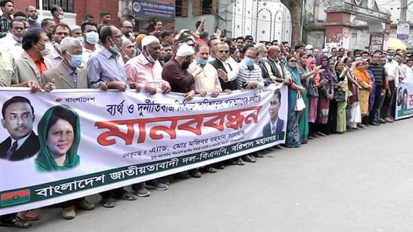 এম বশির, ব্যুরো প্রধান, বরিশাল: নির্বাচন কমিশনের পদত্যাগের দাবিতে বরিশালে পুলিশের বেষ্টনীতে মানববন্ধন করেছে বিএনপি।কেন্দ্রীয় কর্মসূচির অংশ হিসেবে বরিশাল মহানগর বিএনপির ব্যানারে সোমবার সকাল ১১টায় নগরীর সদর রোডের অশ্বিনী কুমার