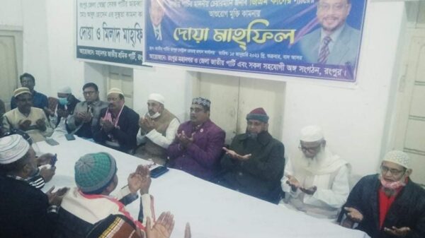 কবির – মেট্রোপলিটন কোতয়ালী থানা প্রতিনিধি জাতীয় পার্টির চেয়ারম্যান জিএম কাদেরের আশুরোগ মুক্তি কামনা করে শুক্রবার বিকেলে রংপুর মহানগর ও জেলা জাতীয় পার্টির আয়োজনে দোয়া মাহফিল অনুষ্ঠিত হয়। এসময় উপস্থিত