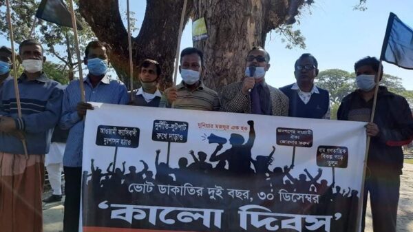 (হবিগঞ্জ জেলা প্রতিনিধি) — ৩০ ডিসেম্বর একাদশ জাতীয় সংসদ নির্বাচনের দুই বছর পূর্তির দিনে হবিগঞ্জে “কালো দিবস” পালন করেছে বামজোট। দেশব্যাপী কেন্দ্রীয় কর্মসূচীর অংশ হিসেবে তাদের ভাষায় “ভোট ডাকাত” সরকারের