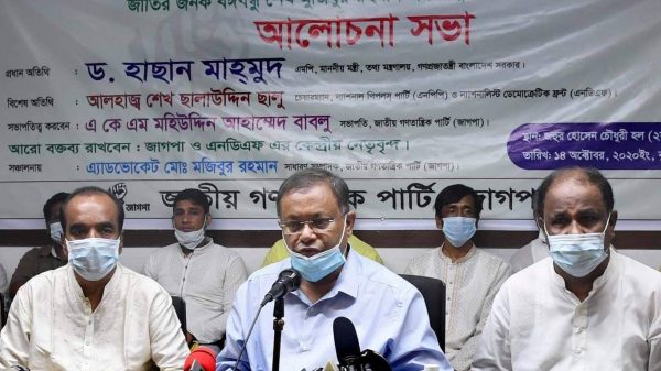 ঢাকা, বুধবার, ১৪ অক্টোবর ২০২০: তথ্যমন্ত্রী ও আওয়ামী লীগের যুগ্ম সাধারণ সম্পাদক ড. হাছান মাহমুদ বলেছেন, ‘রাজনৈতিক ও চিন্তার দৈন্যের কারণেই বিএনপি বঙ্গবন্ধুকে স্বীকার করতে ব্যর্থ এবং তারা ইতিহাস বিকৃত