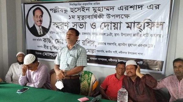 ব্রাহ্মণবাড়িয়ার নবীনগর উপজেলা শাখা জাতীয় পার্টির উদ্বোগে জাতীয় পার্টির সাবেক চেয়ারম্যান পল্লীবন্ধু হুসাইন মুহাম্মদ এরশাদের প্রথম মৃত্যুবার্ষিকী পালিত হয়েছে।এ উপলক্ষে আজ মঙ্গলবার (১৪ জুলাই) সকালে নবীনগর উপজেলা জাতীয় পার্টি কার্যালয়ে