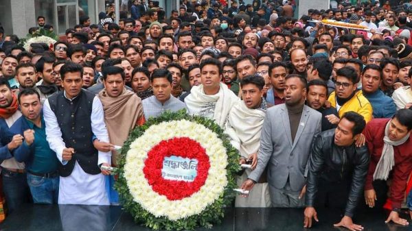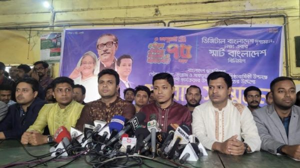 ডেস্ক নিউজঃ ‘ডিজিটাল বাংলাদেশ দৃশ্যমান, লক্ষ্য এবার ‘স্মার্ট বাংলাদেশ বিনির্মাণ’- এই প্রতিপাদ্যকে সামনে রেখে ৭৫ তম প্রতিষ্ঠা বার্ষিকী উপলক্ষে বছরব্যাপী কার্যক্রম ঘোষণা করেছে বাংলাদেশ ছাত্রলীগ।আজ মঙ্গলবার ঢাকা বিশ্ববিদ্যালয়ের মধুর ক্যান্টিনে