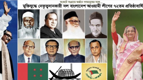 ডেস্ক নিউজ: মহান মুক্তিযুদ্ধের মাধ্যমে দেশের স্বাধীনতা অর্জনে নেতৃত্বদানকারী দল বাংলাদেশ আওয়ামী লীগের ৭২তম প্রতিষ্ঠাবার্ষিকী বুধবার। ১৯৪৯ সালের ২৩ জুন পুরান ঢাকার ঐতিহ্যবাহী রোজ গার্ডেনে পূর্ব পাকিস্তান আওয়ামী মুসলিম লীগ