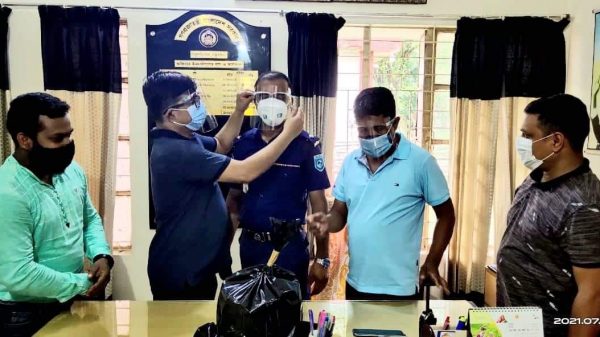 ঠাকুরগাঁও প্রতিনিধি: করোনা সংক্রমণ রোধে ঠাকুরগাঁও সদর থানা পুলিশকে ১০০ ফেস শিল্ড করোনা সুরক্ষা সামগ্রী দিয়েছে ঠাকুরগাঁও জেলা স্বেচ্ছাসেবক লীগ। মঙ্গলবার দুপুর ১২টায় ঠাকুরগাঁও জেলা স্বেচ্ছাসেবক লীগের সভাপতি নজমুল হুদা