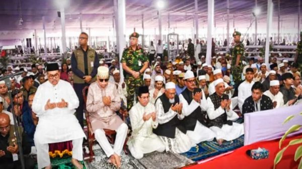 ডেস্ক রির্পোট- জাতীয় ঈদগাহে প্রধান ঈদের জামাতে সর্বস্তরের মুসল্লিদের সঙ্গে নামাজ আদায় করেছেন রাষ্ট্রপতি মো. সাহাবুদ্দিন। আজ বৃহস্পতিবার রাষ্ট্রপতি, তার পরিবারের সদস্য এবং সংশ্লিষ্ট কর্মকর্তারা ঈদুল ফিতরের প্রধান ঈদের নামাজে
