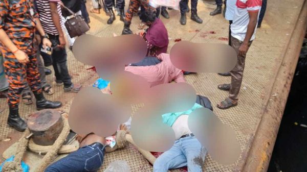 স্টাফ রিপোর্টার- রাজধানীর সদরঘাটে লঞ্চের ছিঁড়ে যাওয়া দড়ির আঘাতে পাঁচ জনের মৃত্যু হয়েছে। এ ঘটনায় আহত হয়েছেন আরও পাঁচ জন। বৃহস্পতিবার (১১ এপ্রিল) বিকাল ৩টার দিকে এমভি তাসরিফ-৪ লঞ্চের লোহার