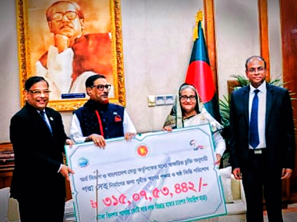 স্টাফ রিপোর্টার – স্বপ্নের পদ্মা সেতু নির্মাণের জন্য নেওয়া ঋণের ৫ম ও ৬ষ্ঠ কিস্তির ৩১৫ কোটিরও বেশি টাকার চেক প্রধানমন্ত্রী শেখ হাসিনার কাছে হস্তান্তর করেছে সেতু কর্তৃপক্ষ। সোমবার (১৮ ডিসেম্বর)
