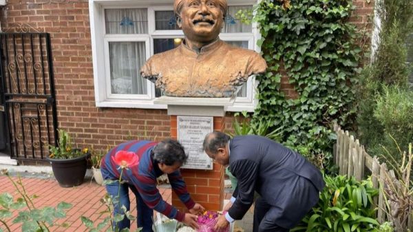 ডেস্ক নিউজ: গ্লাসগোতে বিশ্ব জলবায়ু সম্মেলনে যোগদান শেষে তথ্যমন্ত্রী ও আওয়ামী লীগের যুগ্ম সাধারণ সম্পাদক ড. হাছান মাহমুদ স্থানীয় সময় শনিবার বিকেলে লন্ডনে স্থাপিত বঙ্গবন্ধুর আবক্ষ ভাস্কর্যে পুষ্পস্তবক অর্পণ করে