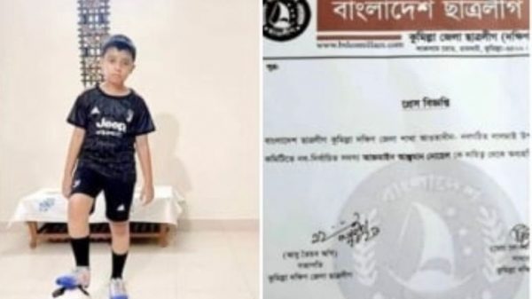 ডেস্ক নিউজ: কুমিল্লার লালমাই উপজেলা ছাত্রলীগের নবগঠিত কমিটিতে স্থান পাওয়া চতুর্থ শ্রেণির ছাত্র আজমাইন আঞ্জুম নোয়েলকে অব্যাহতি দেয়া হয়েছে। ফেসবুকে সমালোচনার মুখে বুধবার (৬ অক্টোবর) বিকেলে এক বিজ্ঞপ্তিতে তাকে অব্যাহতি