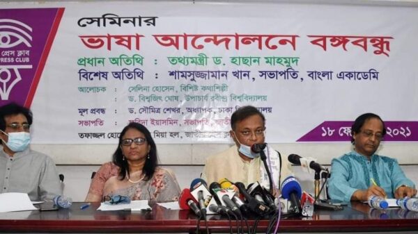 ডেস্ক নিউজ: ঢাকা, বৃহস্পতিবার ১৮ ফেব্রুয়ারি ২০২১: তথ্যমন্ত্রী ও আওয়ামী লীগের যুগ্ম সাধারণ সম্পাদক ড. হাছান মাহমুদ বলেছেন, ‘ভাষা আন্দোলনে বঙ্গবন্ধুর ভূমিকাকে প্রকাশ না করা ছিলো জাতীয়ভাবে আমাদের ভুল ও