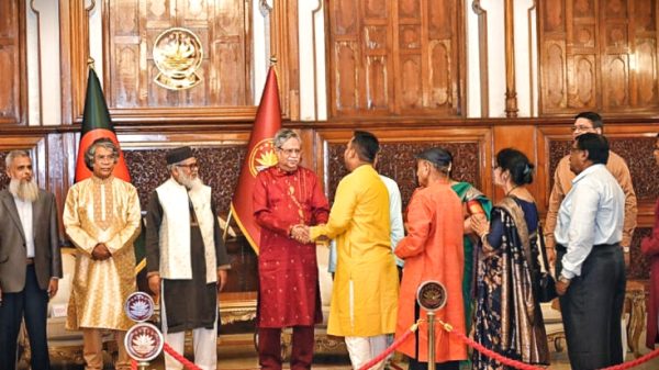 ডেস্ক রিপোর্ট – শারদীয় দুর্গোৎসব ও বিজয়া দশমী উপলক্ষে হিন্দু ধর্মালম্বীদের সঙ্গে শুভেচ্ছা বিনিময় করেছেন গণপ্রজাতন্ত্রী বাংলাদেশ সরকারের মহামান্য রাষ্ট্রপতি মোহাম্মদ সাহাবুদ্দিন। বৃহস্পতিবার (২ অক্টোবর) সকালে বঙ্গভবনে উপস্থিত সকলের সঙ্গে