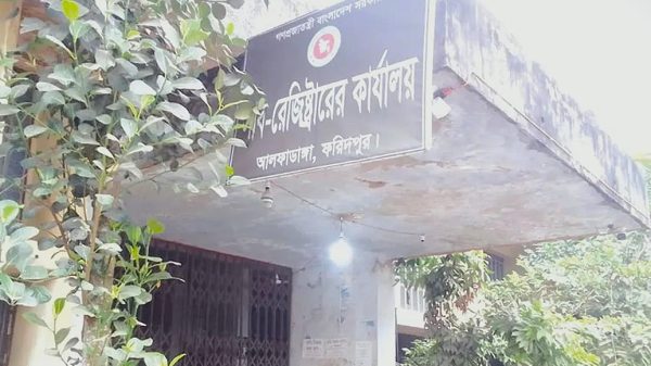 ডেস্ক রিপোর্ট- ফরিদপুরের আলফাডাঙ্গা সাব-রেজিস্ট্রি অফিসে দলিল লেখককে ধস্তাধস্তি করেছেন স্থানীয় বিএনপি নেতারা। এ ঘটনায় সাব-রেজিস্টারের অফিসকক্ষে উত্তেজনা ছড়িয়ে পড়ে এবং পরে বাইরে গিয়েও হাতাহাতির ঘটনা ঘটে। জানা গেছে, শনিবার