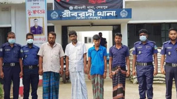 জাহেদুল রাসেল,শেরপুর জেলা প্রতিনিধি: শেরপুরের শ্রীবরদীতে হেরোইন বিক্রিকালে আইন-শৃঙ্খলা বাহিনীর তালিকাভুক্ত ৩ মাদক ব্যবসায়ীকে গ্রেপ্তার করেছে শ্রীবরদী থানা পুলিশ। গতকাল শনিবার দিবাগত গভীর রাতে পৌর শহরের কলাকান্দা এলাকা থেকে হেরোইন