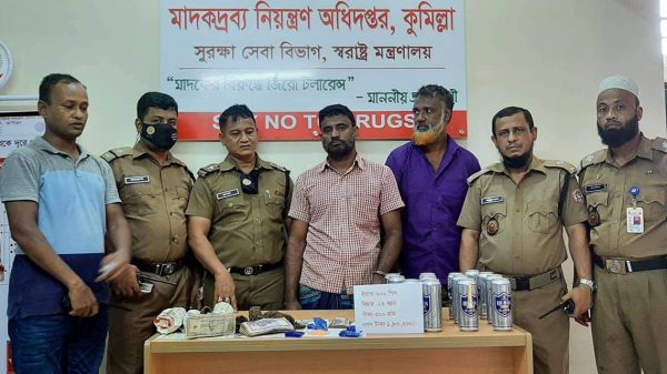 কুমিল্লা ব্যুরো: কুমিল্লার লাকসামের কোমারডোগা ও চিকনিয়া এলাকায় অভিযান চালিয়ে ইয়াবা, বিয়ার, গাঁজা, নগদ টাকা এবং সিসি ক্যামেরাসহ দুজনকে আটক করেছে মাদকদ্রব্য নিয়ন্ত্রন অধিদপ্তর। আটককৃত একজন লাকসাম পৌর আওয়ামীলীগের ৩