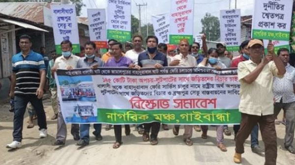 শেখ মো: আতিকুর রহমান আতিক,গাইবান্ধা : গাইবান্ধা জেলার বালাসীঘাট থেকে জামালপুর জেলার বাহাদুরাবাদ ঘাট পর্যন্ত ফেরি সার্ভিস চালুর নামে সরকারের ১৪৫ কোটি টাকা অপচয় ও লুটপাটের সাথে জড়িতদের শাস্তির দাবিতে