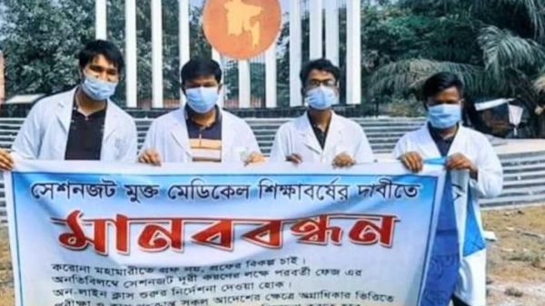 সেশনজট মুক্ত ও অটোপ্রমোশনের দাবিতে মানববন্ধন করেছেন সিরাজগঞ্জ জেলা মেডিকেল স্টুডেন্ট এসোসিয়েশন ও সিরাজগঞ্জে অবস্থানরত সাধারণ মেডিকেল শিক্ষার্থীবৃন্দ। গত বুধবার বেলা ১১ টার সময় শহীদ মিনারের সামনে মানববন্ধন কর্মসূচি পালন আরো দেখুন