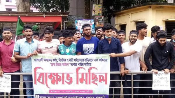 ধর্ষণের একমাত্র শাস্তি মৃত্যুদণ্ড ও এর বিচারকার্য দ্রুত সম্পন্ন করার দাবিতে সত্যের সন্ধানে ডেভেলপমেন্ট অরগানাইজেশন ও সাধারণ শিক্ষার্থীরা। ঝালকাঠির রাজাপুরে ৬ অক্টোবর মঙ্গলবার সকাল ১০টার দিকে রাজাপুর প্রেসক্লাব চত্বরে সত্যের