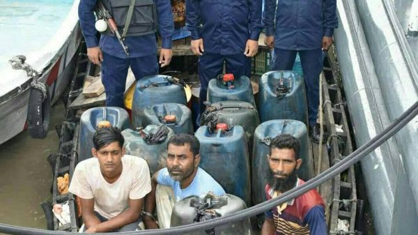 দেড় হাজার লিটার চোরাই ডিজেল ও একটি ইঞ্জিনচালিত ট্রলারসহ ৩ চোরাকারবারিকে আটক করেছে কোস্টগার্ড পশ্চিম জোনের একটি অপারেশন দল।সোমবার গভীর রাতে মোংলা বন্দরের হারবারিয়া চ্যানেলের পশুর নদীতে গোপন সংবাদের ভিত্তিতে