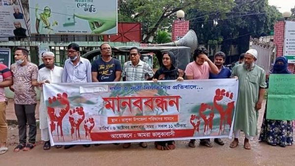 ময়মনসিংহের ভালুকায় ধর্ষণ ও নারী নির্যাতনের প্রতিবাদে মানববন্ধন অনুষ্ঠিত হয়েছে। মঙ্গলবার (৬ অক্টোবর) বেলা সাড়ে ১১ টার দিকে ভালুকা উপজেলা পরিষদের সামনে গফরগাঁও সড়কে এই মানববন্ধন অনুষ্ঠিত হয়। ওই মানববন্ধন