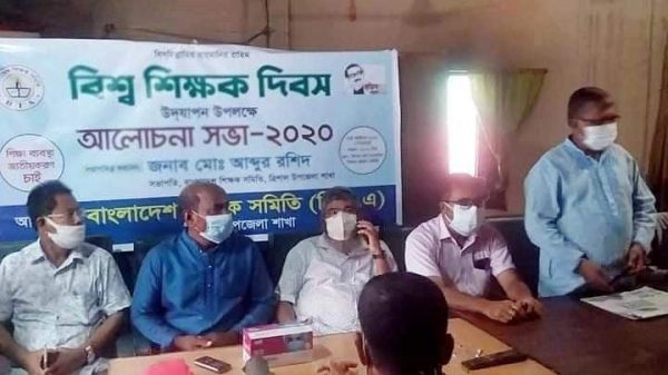 ময়মনসিংহের ত্রিশালে ত্রিশাল উপজেলা মাধ্যমিক শিক্ষক কল্যাণ সমিতির কার্যালয়ে ৫ অক্টোবর সোমবার সকালে বিশ্ব শিক্ষক দিবস উপলক্ষে আলোচনা সভা অনুষ্ঠিত হয়। সভার শুরুতে উপস্থিত সকল শিক্ষককে বিনামূল্যে মাস্ক বিতরণ করা