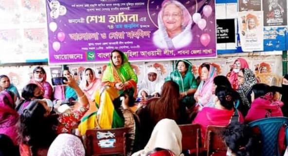 জাতির পিতা বঙ্গবন্ধুর কন্যা, বিশ্ব রাজনীতির উজ্জ্বল নক্ষত্র বাংলাদেশের রাষ্ট্রনায়ক প্রধানমন্ত্রী জননেত্রী শেখ হাসিনার ৭৪ তম জন্মবার্ষিকী উপলক্ষে পাবনা জেলা মহিলা আওয়ামী লীগের উদ্যোগে আলোচনা সভা ও দোয়া মাহফিল অনুষ্ঠিত