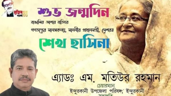 বাংলাদেশ আওয়ামী লীগের সভানেত্রী, বঙ্গবন্ধু কন্যা প্রধানমন্ত্রী শেখ হাসিনার ৭৪তম জন্মদিন উপলক্ষ্যে নেত্রীকে শুভকামনা ও অফুরন্ত শুভেচ্ছা জানিয়েছেন ইন্দুরকানী উপজেলা চেয়ারম্যান জনাব এ্যাডঃ এম. মতিউর রহমান । তিনি এক বার্তায়