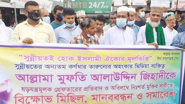 গাজীপুরের কালীগঞ্জে প্রখ্যাত ইসলামী চিন্তাবিদ মিডিয়া ব্যক্তিত্ব আল্লামা মুফতি আলাউদ্দিন জিহাদীকে ষড়যন্ত্রমূলক মিথ্যা মামলায় গেস্খফতার প্রতিবাদে ও অবিলম্বে নিঃশর্ত মুক্তির দাবীতে মানববন্ধন, বিক্ষোভ ও প্রতিবাদ সভা অনুষ্ঠিত হয়েছে। মঙ্গলবার (২২