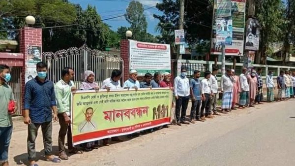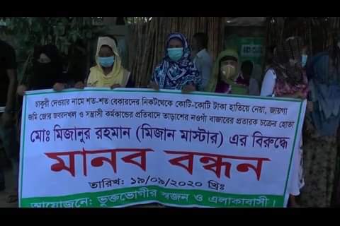 সিরাজগঞ্জের তাড়াশে প্রতারক মিজান মাস্টারের বিরুদ্ধে চাকরি দেওয়ার নামে বেকারদের কাছ থেকে কোটি কোটি টাকা হাতিয়ে নেয়ার অভিযোগে বিচারের দাবিতে মানববন্ধন। চাকরি দেওয়ার নামে শত শত বেকারদের কাছে থেকে কোটি