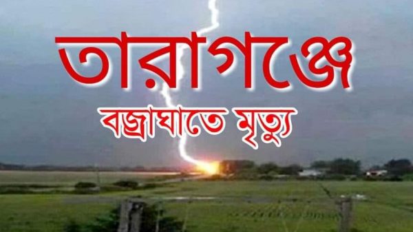গতকাল তারাগঞ্জ উপজেলা ইকরচালি ইউনিয়ন কাচনা গ্রামের সুলতান মিয়ার ছেলে সুরুজ মিয়া (১৫) নামে এক স্কুল ছাত্র বজ্রপাতে নিহত হয় । ঘটনাস্থলে প্রত্যক্ষ দর্শী এবং নিহত পরিবার বলেন- বিকেল অানুমানিক