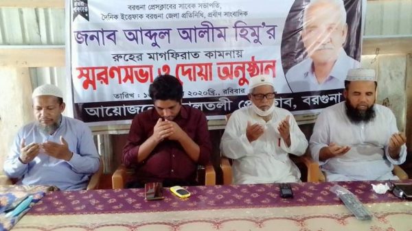 দৈনিক আজকের কন্ঠের প্রকাশক ও সম্পাদক এবং ইত্তেফাকের বরগুনা জেলা প্রতিনিধি, বরগুনা প্রেসক্লাবের সাতবারের সাবেক সভাপতি প্রয়াত আবদুল আলীম হিমু’র স্মরণে রবিবার তালতলী প্রেসক্লাবে স্মরণসভা ও দোয়া অনুষ্ঠিত হয়েছে। প্রেসক্লাবের