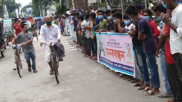জাতির জনক বঙ্গবন্ধু শেখ মুজিবুর রহমানের ঐতিহাসিক ৭ ই মার্চের ভাষণকে কুরুচিপূর্ণ ভাষায় ব্যঙ্গ ও বিকৃতিকারী রংপুর জেলা ছাত্রলীগের সভাপতি মেহেদী হাসান সিদ্দিকি রনির বিরুদ্ধে মানববন্ধন কর্মসূচি পালিত হয়, মানববন্ধন