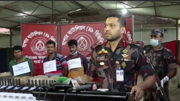 যশোরের বেনাপোল সীমান্তে বিজিবির সদস্যরা অভিযান চালিয়ে বিপুল পরিমান অস্ত্র-গুলি ও মাদকসহ ৩ জনকে আটক করেছে। পরে শনিবার বিকেলে যশোর ঝুমঝুমপুরস্থ ৪৯ ব্যাটালিয়ের সদর দফতরের অধিনায়ক লে.কর্ণেল সেলিম রেজা প্রেস