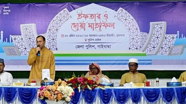 গাইবান্ধা প্রতিনিধি গাইবান্ধা জেলা পুলিশের আয়োজনে ইফতার মাহফিল অনুষ্ঠিত হয়েছে। উক্ত ইফতার মাহফিলে বিশেষ মেহমান ছিল এতিম শিশুরা। বুধবার (২৭ এপ্রিল) সন্ধ্যায় গাইবান্ধা পুলিশ লাইন্স চত্বরে সাদুল্লাপুর আরো দেখুন
