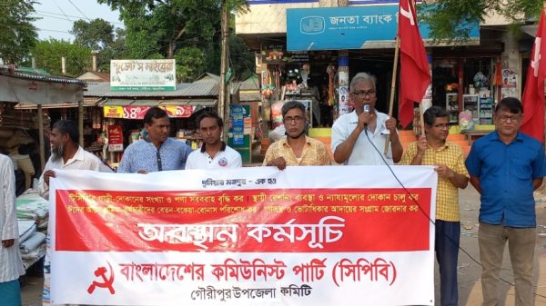 গৌরীপুর (ময়মনসিংহ) প্রতিনিধি ময়মনসিংহের গৌরীপুরে বিভিন্ন দাবিতে অবস্থান কর্মসূচি পালন করেছে বাংলাদেশের কমিউনিস্ট পার্টি (সিপিবি) গৌরীপুর উপজেলা শাখা। রোববার বিকালে পৌর শহরের হারুন পার্ক এলাকায় এই কর্মসূচি পালিত হয়। অবস্থান আরো দেখুন