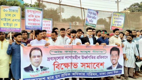 সোহেল রানা,সাভার (ঢাকা): ‘দাম কমাও, মানুষ বাঁচাও’ এই শ্লোগানে দ্রব্যমূল্যের লাগামহীন উর্ধ্বগতির প্রতিবাদে ঢাকার আশুলিয়ায় বিক্ষোভ সমাবেশ অনুষ্ঠিত হয়েছে। বিক্ষোভকারীরা এসময় তিন দফা দাবী উত্থাপন করেন। শুক্রবার(২৫ মার্চ) বিকেল পৌণে আরো দেখুন