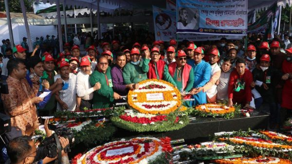 নিজস্ব প্রতিবেদক, ঢাকা: জাতির পিতা বঙ্গবন্ধু শেখ মুজিবুর রহমানের প্রতিকৃতিতে শ্রদ্ধা নিবেদন করেছে আওয়ামী স্বেচ্ছাসেবক লীগ। সোমবার (৭ মার্চ) সকাল ৮ টায় বঙ্গবন্ধুর প্রতিকৃতিতে ফুল দিয়ে এ শ্রদ্ধা জানানো হয়। আরো দেখুন
