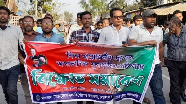 কিশোরগঞ্জ (নীলফামারী) প্রতিনিধিঃ নিত্য প্রয়োজনীয় দ্রব্যের অস্বাভাবিক মূল্য বৃদ্ধির প্রতিবাদে বিক্ষোভ সমাবেশ করেছে বাংলাদেশ জাতীয়তাবাদী দল বি এন পির পক্ষ থেকে নীলফামারী জেলার কিশোরগঞ্জ উপজেলার ষ্টেডিয়ামের সামনে ৫ মার্চ শনিবার আরো দেখুন