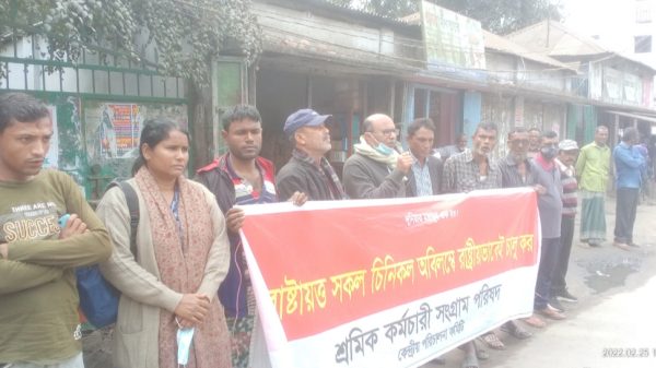 গাইবান্ধা প্রতিনিধি :রাষ্ট্রায়ত্ত সকল চিনিকল অবিলম্বে রাষ্ট্রীয়ভাবেই চালুর দাবিতে গাইবান্ধার গোবিন্দগঞ্জ উপজেলায় পথসভা করা হয়েছে। ২৫ ফেব্রুয়ারি শুক্রবার দুপুরে মহিমাগঞ্জে অবস্থিত রংপুর চিনিকলের সামনে এই পথসভা করে শ্রমিক কর্মচারী সংগ্রাম পরিষদ আরো দেখুন